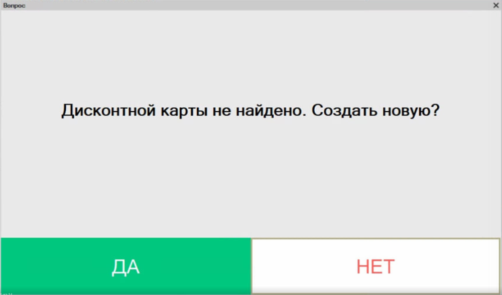 В случае если будет введен несуществующий номер дисконтной карты, то будет предложено создать новую.