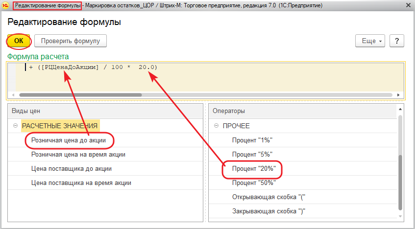 - «Формула расчета» — закодированная формула расчета компенсации за единицу товара. Может быть такой: «[РЦ Цена до акции]*0.1 » или «[РЦ Цена акции]*0.1 » или «[ЦП Цена до акции]*0.1 » или «[ЦП Цена акции]*0.1 »;