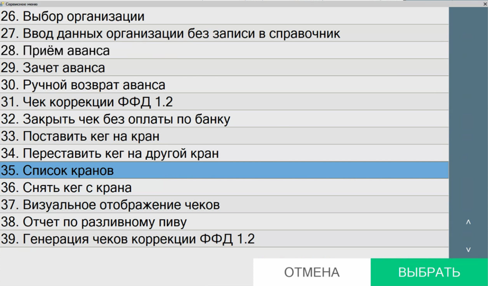 Начиная с 20 релиза Кассира 5 добавлена форма работы с кранами.