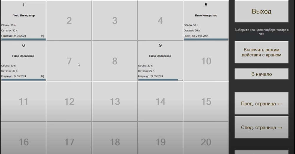 После вызова формы - откроется список всех кранов, с установленными на них кегами.
