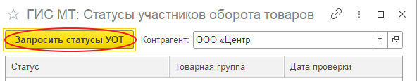 При нажатии кнопки «Обновить статусы» запускается выполнение регламентного задания «ГИСМТ: Получение статусов УОТ» для получения актуальных статусов по контрагенту.