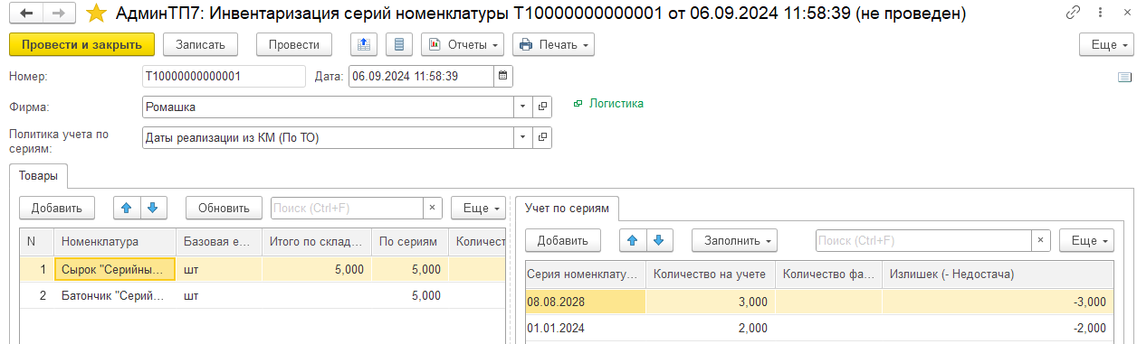 Инвентаризация серий номенклатуры