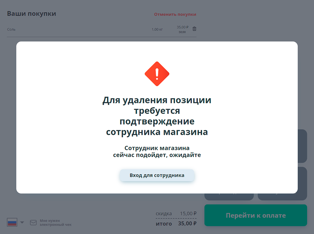 При попытке убрать позицию из чека, ilexx.self-checkout запрашивает разрешение консультанта.