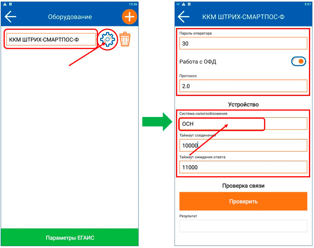 - Если все настройки выполнены верно, то в поле "Результат" отобразиться название вашей кассы,