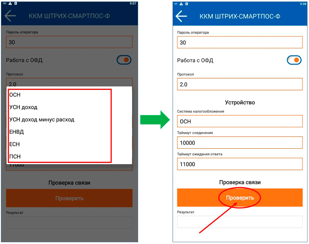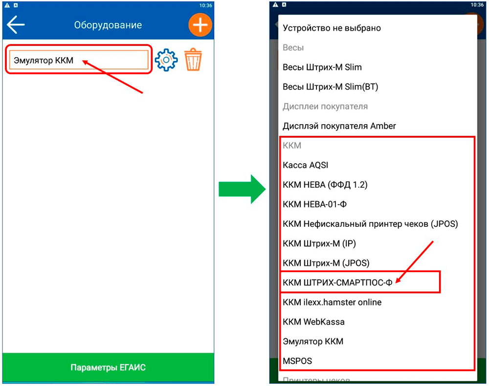 - Выберите "ККМ ШТРИХ-СМАРТПОС-Ф":