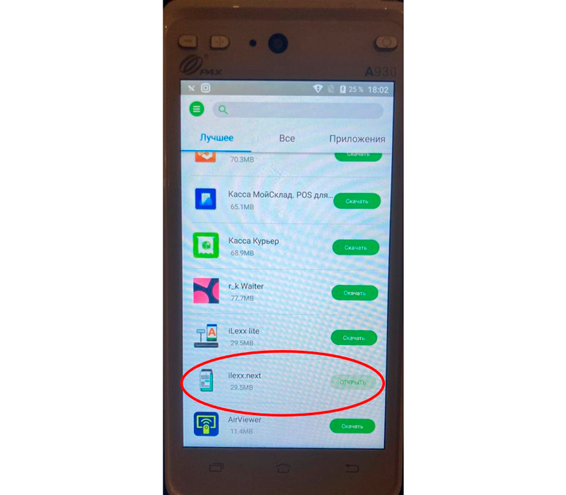 Для установки приложения ilexx.next на кассу POScenter-BANK-Ф через магазин приложений MAXSTORE, выполните следующие шаги: