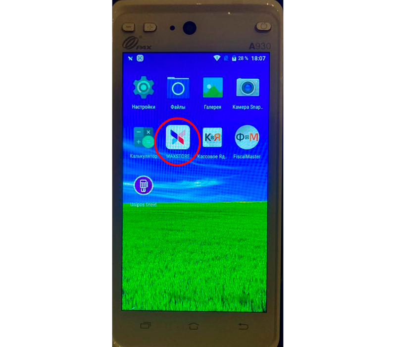 - На главном экране кассы найдите и откройте магазин приложений MAXSTORE: