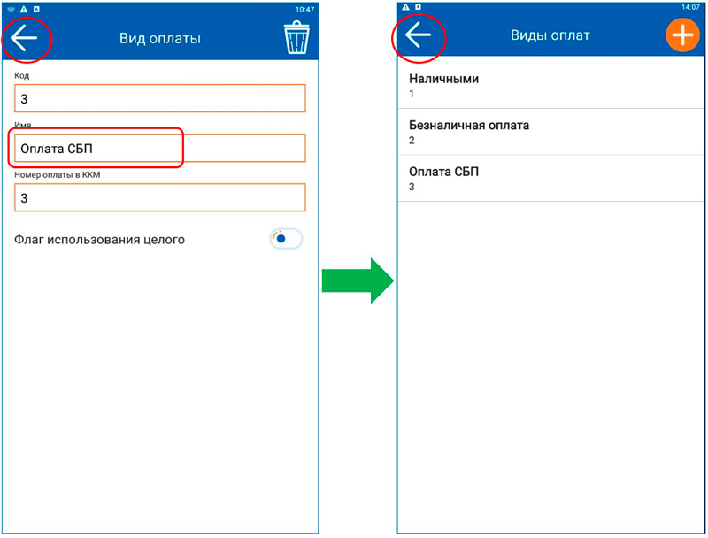 - Даете название новому элементу вида оплаты (например "Оплата СБП" или просто "СБП"):