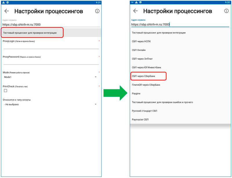 - В строке адрес сервиса вводите: https://sbp.shtrih-m.ru:7000, если не подставилось автоматически,