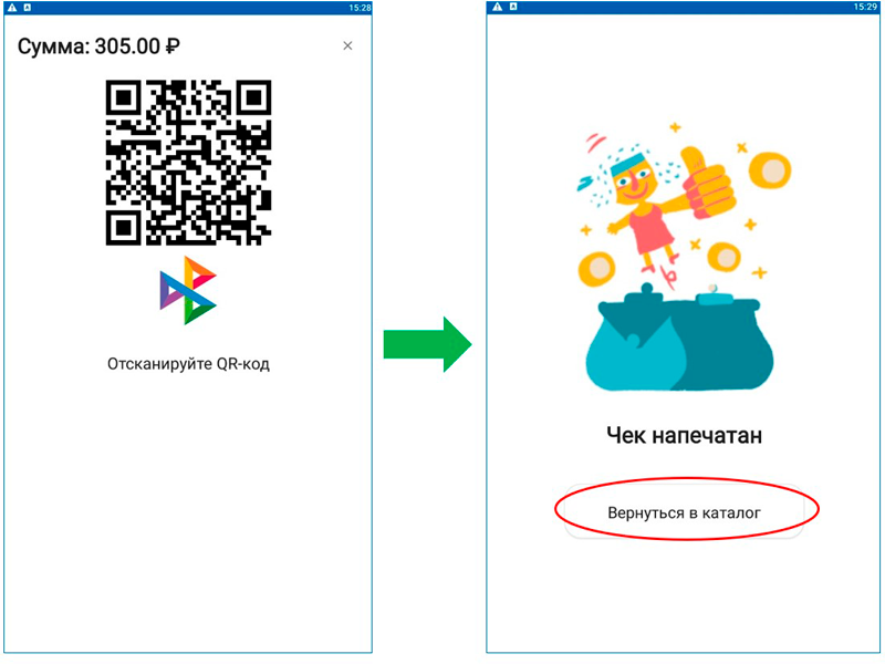 - Покупатель, через банковское приложение сканирует QR-код камерой смартфона и проводит оплату: