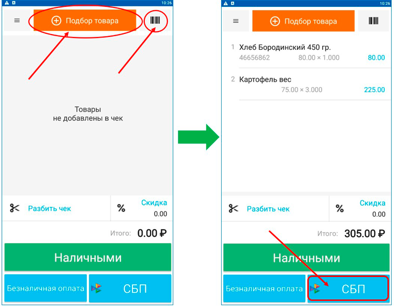 - В режиме продаж, при оплате через СБП – вы генерируете динамический код на экране кассы,