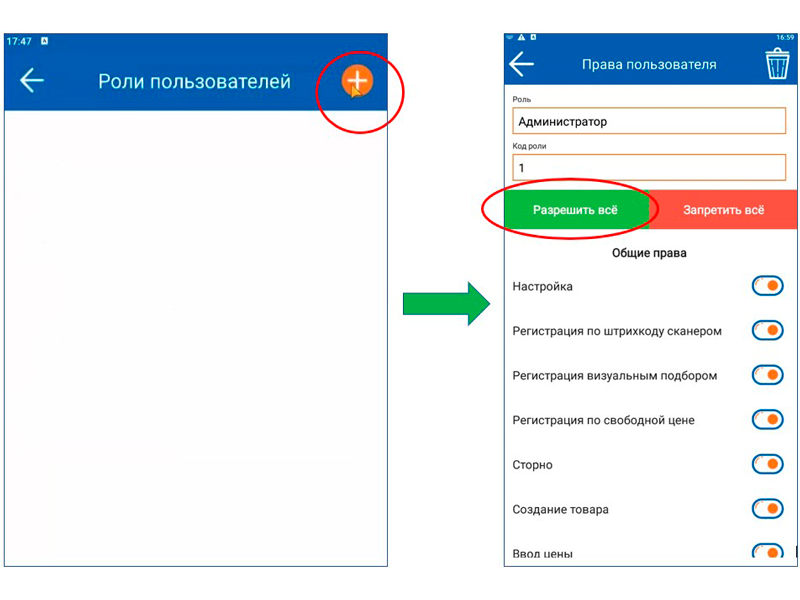 Далее можно продолжить создавать, например, роли "Кассира" и "Старшего кассира" или сразу перейти к созданию "Пользователей".