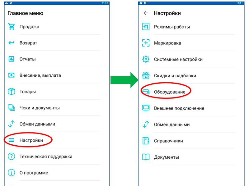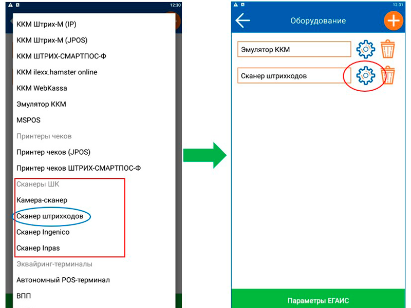 - Для настройки сканера штрих-кодов зайдите в ilexx.next - Главное меню - Настройки - Оборудование:
