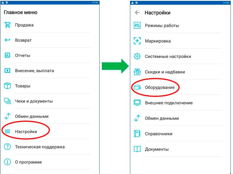 - Зайдите в Главное меню - Настройки - Оборудование: