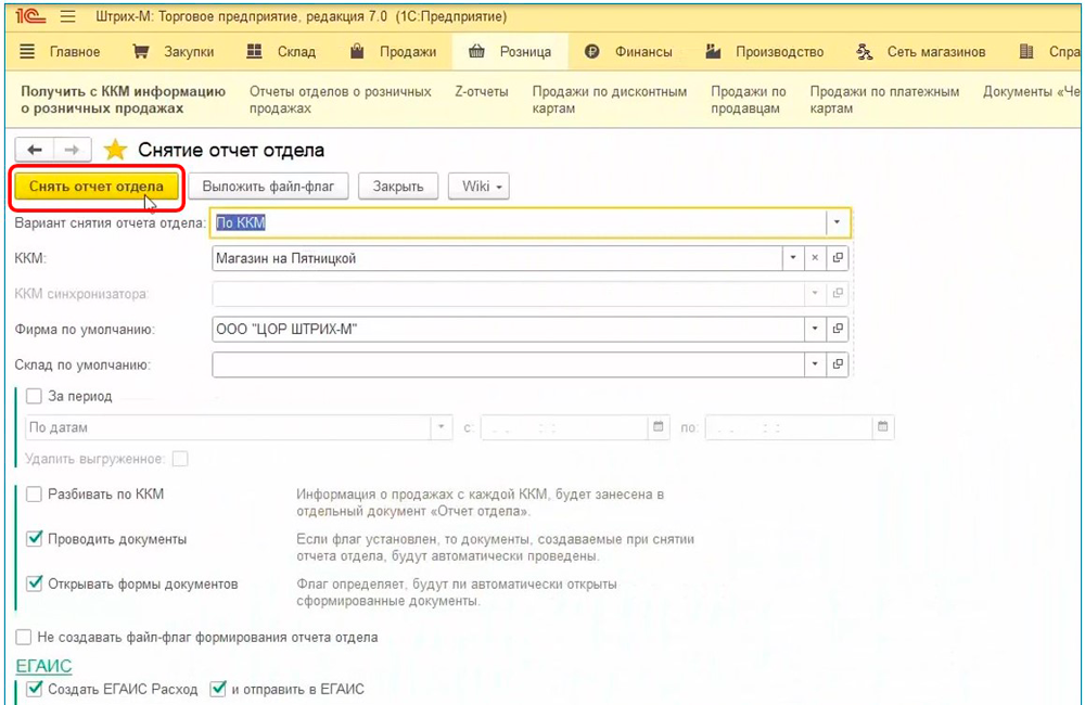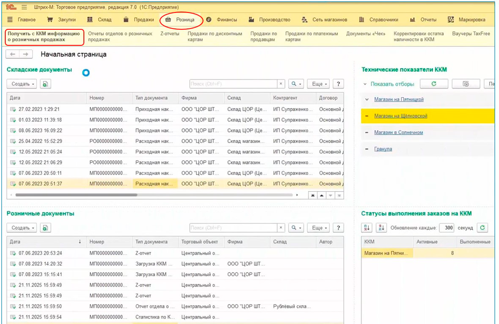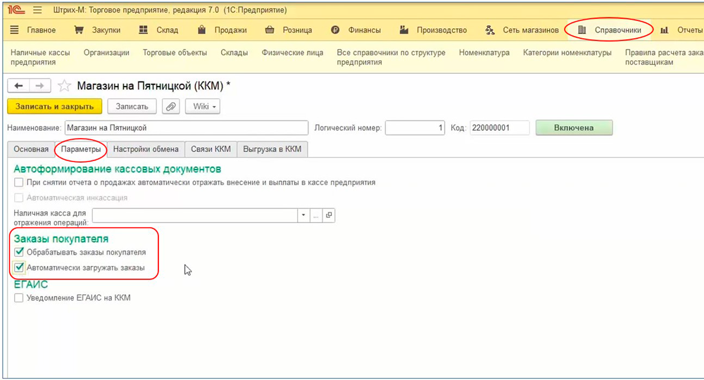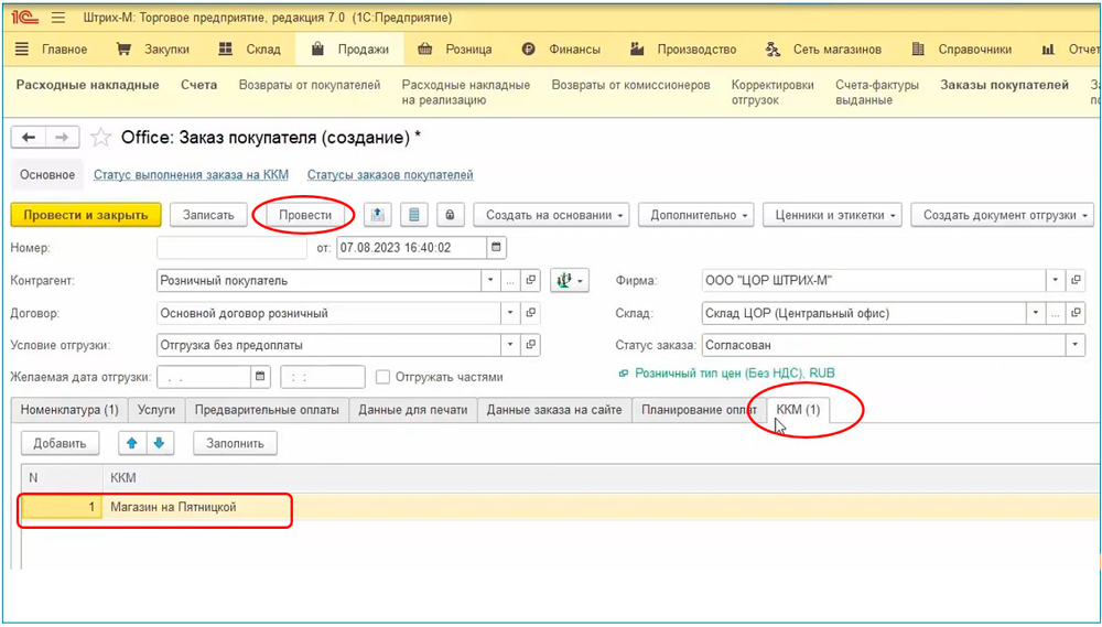 После согласования заказа, если связка с магазином настроена правильно, в документе автоматически появляется информация о ККМ, на которую должен отправиться заказ.