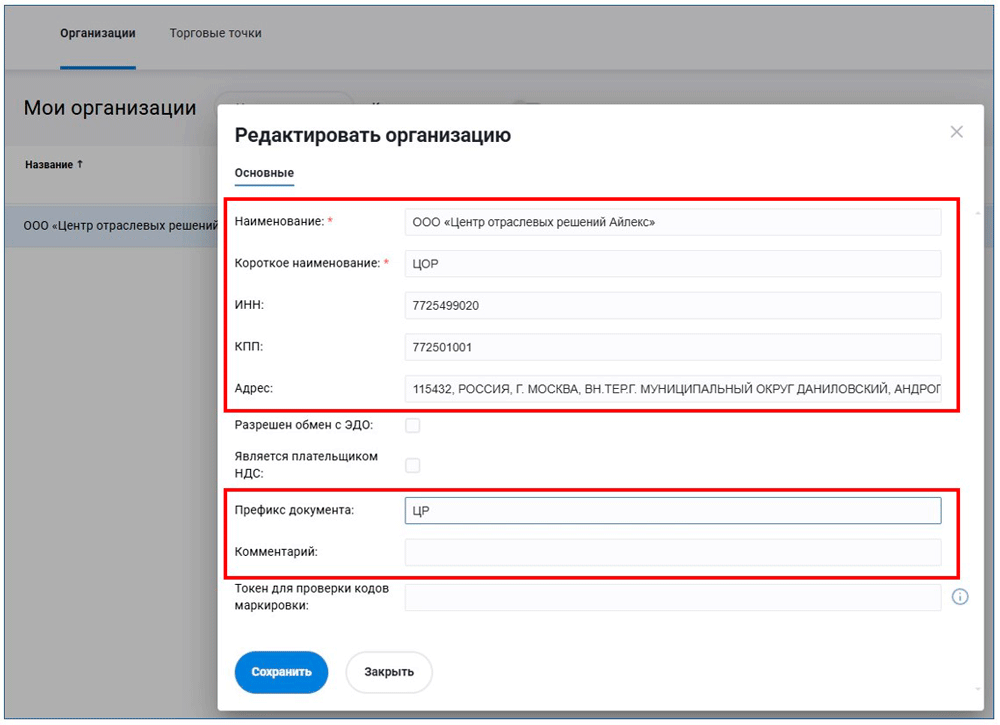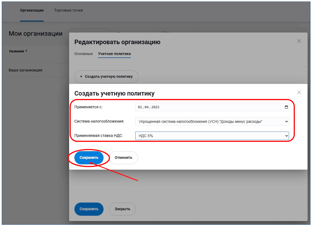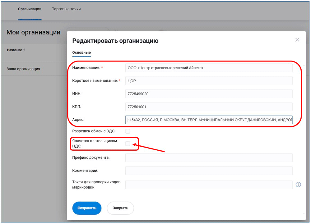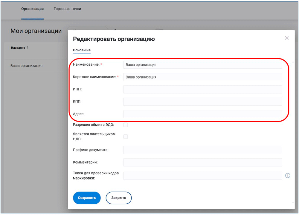- Нажать кнопку "Сохранить" - ваша организация создана,