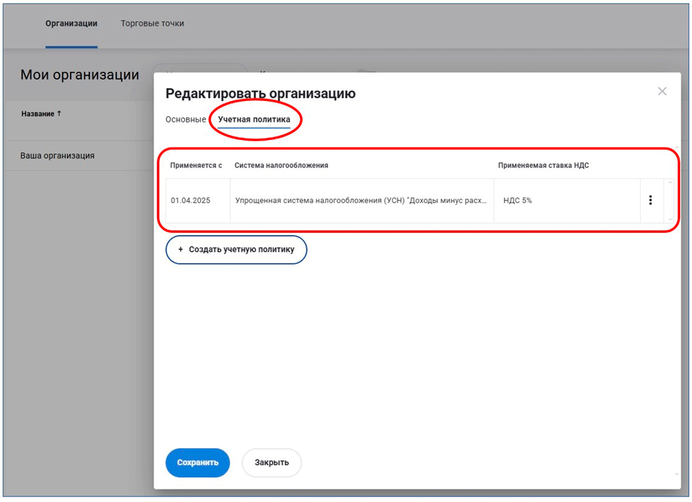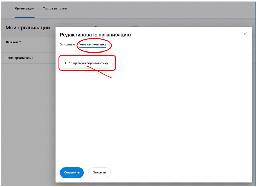 - После установки флага станет доступна вкладка "Учетная политика" - нажмите на нее для перехода: