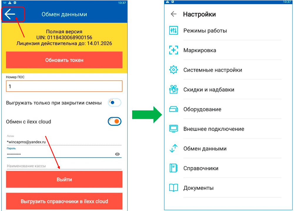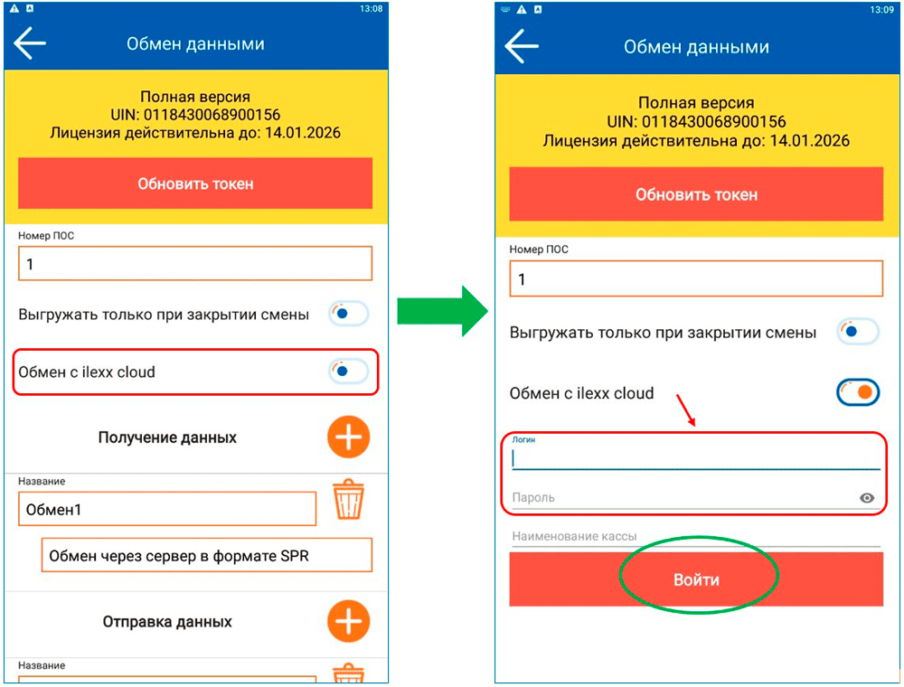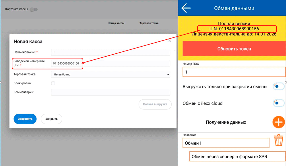 - Вводите UIN номер кассы, его вы можете посмотреть в ilexx.next,