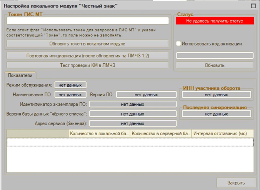 Если с модулем связь есть и он ни разу не был инициализирован, то у этой кнопки будет заголовок "Инициализировать" и в таком случае при нажатии будет выполнен запрос инициализации с указанным токеном ГИС МТ.