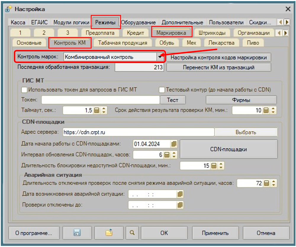 Такая настройка позволит делать оперативную проверку в ГИС МТ, а если нет связи, то в ЛМЧЗ