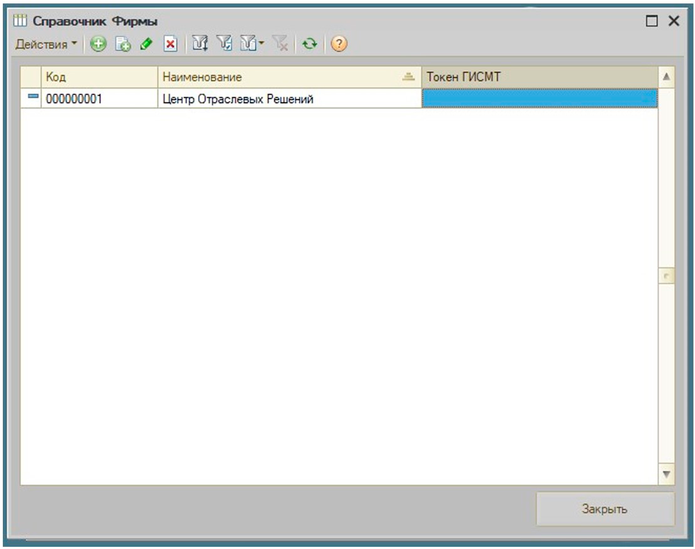 Если элемент не найден или у фирмы Токен ГИСМТ не заполнен, то используется токен с основной вкладки Контроль КМ.
