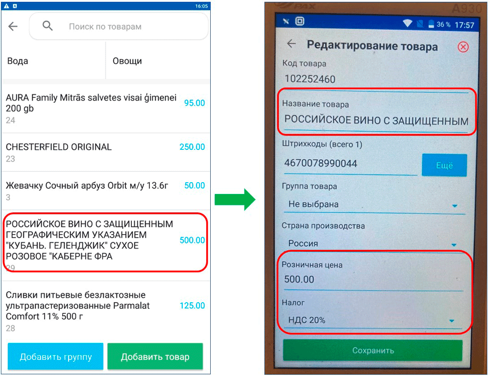 - После нахождения товара вам откроется карточка товара с заполненными полями, при необходимости, вы можете ее отредактировать.