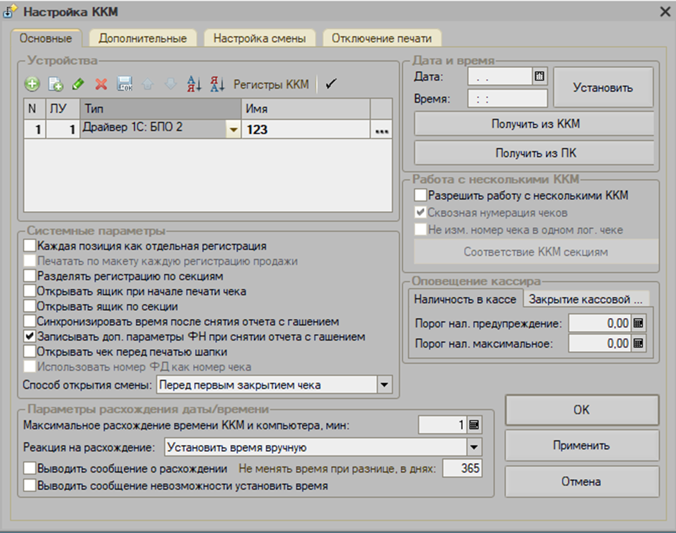 Запустите приложение К5 и перейдите в настройки драйвера БПО. (Настройки- Оборудование - драйвер БПО