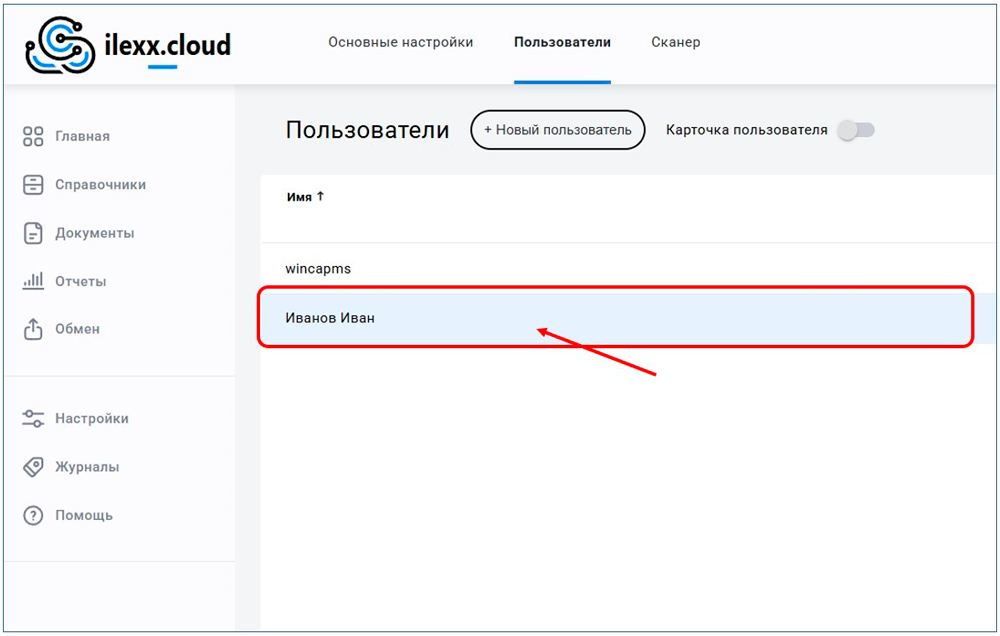 - Новый пользователь добавился в список, нажмите на него для входа в его карточку: