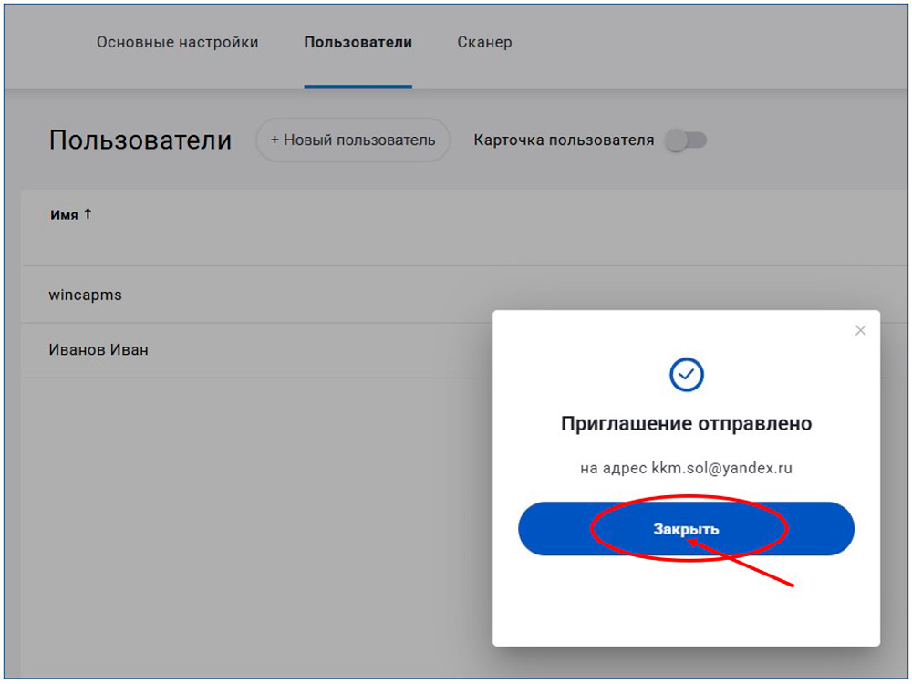 - В уведомлении об отправке приглашения нажмите "Закрыть":