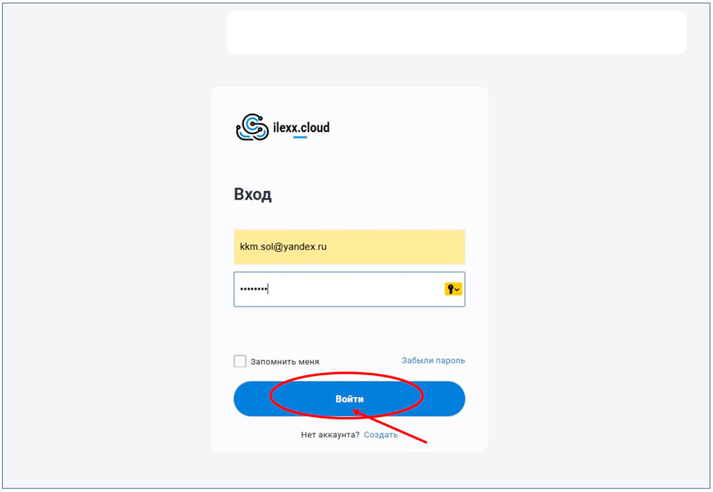 - Его переадресует на сайт ilexx.cloud для завершения регистрации, для этого нужно нажать "Войти в личный кабинет":