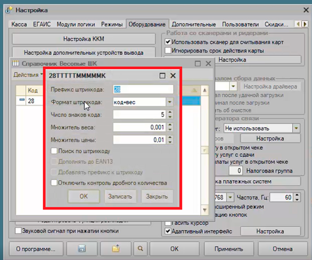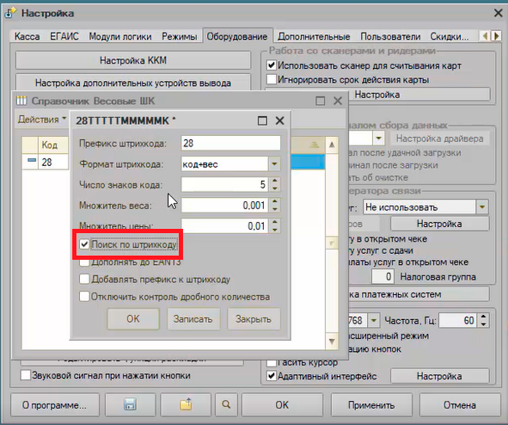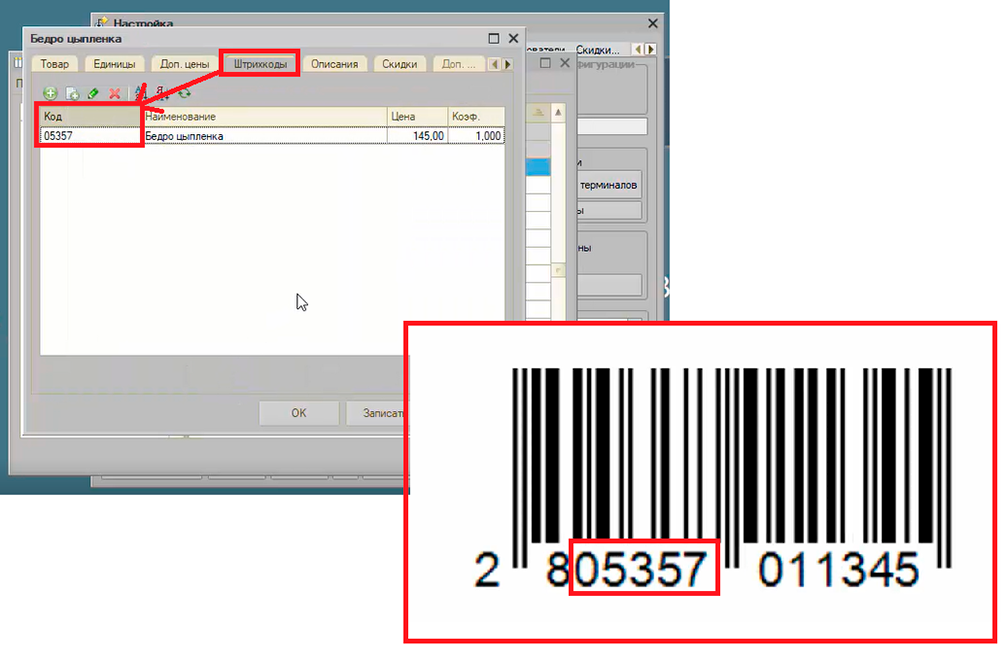 Чтобы касса понимала, что это весовой штрих-код цыпленка, который у нас заведен, нужно связать его с нашей базой. Для этого: