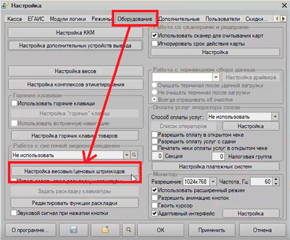 Переходим в раздел «Оборудование», находим справочник «Настройка весовых штрих-кодов».
