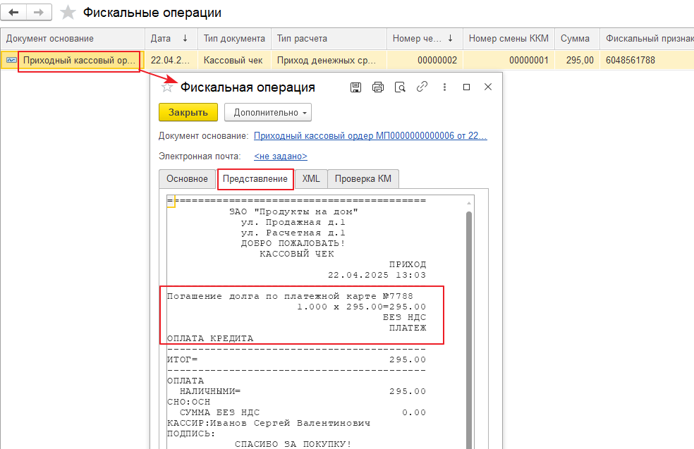 Примечание. Внесение аванса на платежную карту и учет аванса при оплате товара см. «Внесение аванса на платежную карту в «Кассир 5» и учет аванса при оплате покупки».