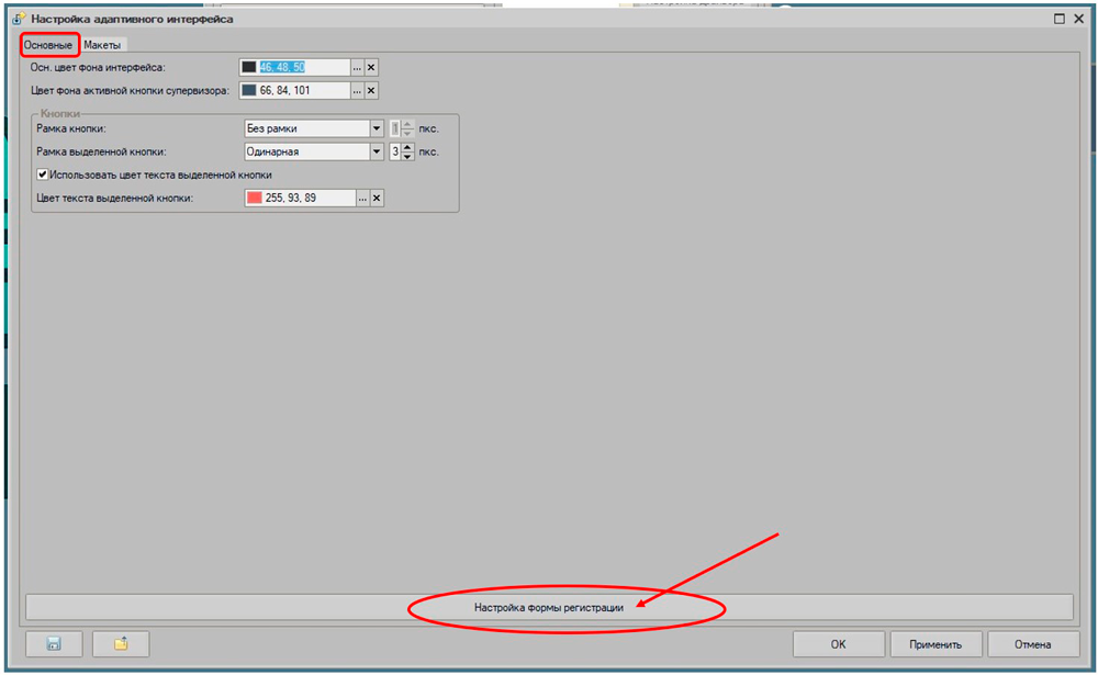 - На вкладке "Основные" - внизу окна нажмите кнопку "Настройка формы регистрации"