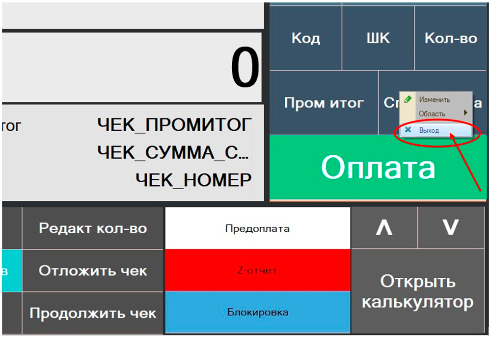 - Для выхода из формы регистрации - нажмите на любую кнопку правой кнопкой мышки и выберите "Выход"