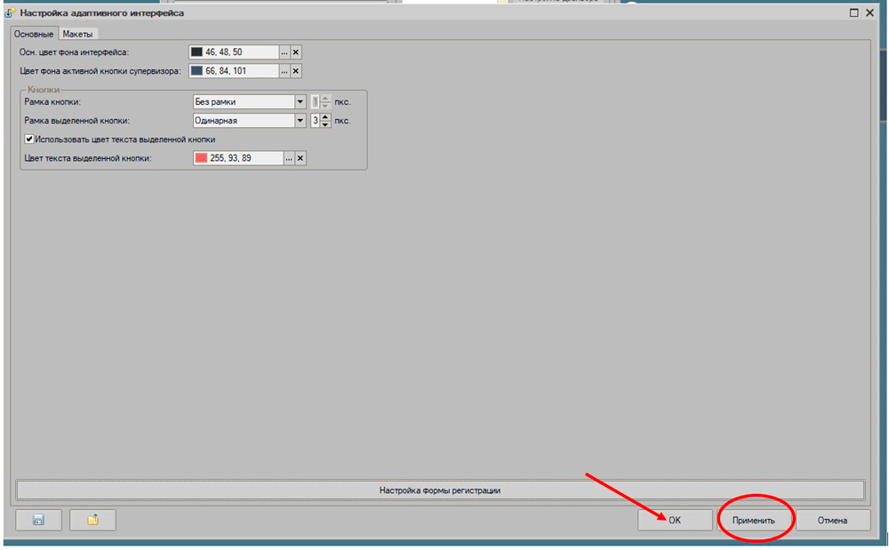 - В настройках адаптивного интерфейса нажмите "Применить" и "Ок"
