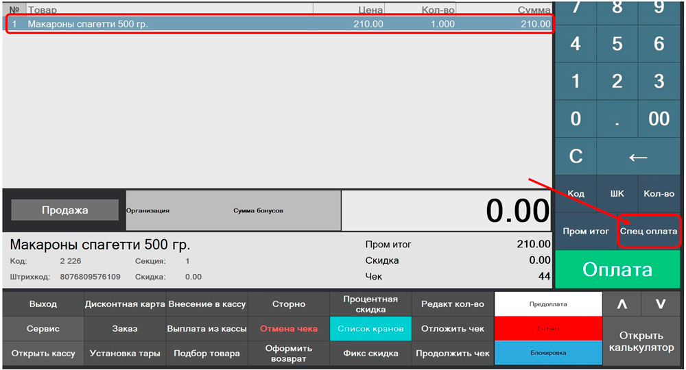 - Нажмите кнопку "Спец оплата", которую настраивали