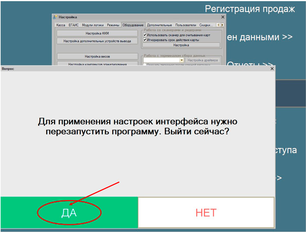 - Подтвердите перезапуск Кассир 5 для применения изменений