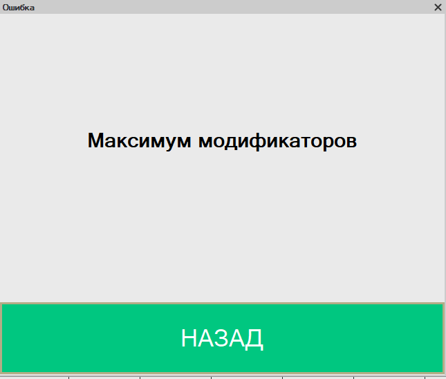 При попытке добавить к товару/блюду второй модификатор на экран выводится сообщение об ошибке.