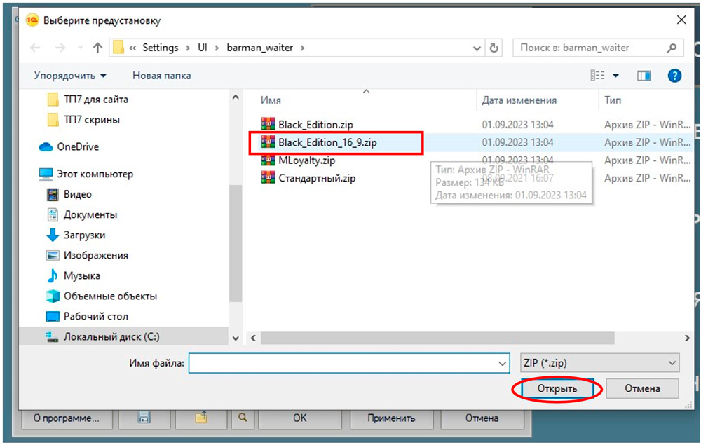 - "Кассир 5" автоматически откроет вам папку с архивами интерфейсов, из которых вы можете выбрать свой