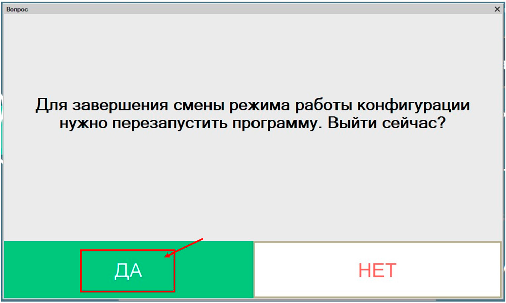 - Подтвердите перезапуск программы для завершения смены режима