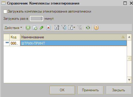 Флаг "Загружать комплексы этикетирования автоматически"