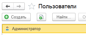 Для создания нового пользователя конфигурации следует в разделе «Администрирование» открыть функцию «Настройки пользователей и прав» и в группе «Пользователи» перейти по ссылке «Пользователи». Открывается справочник «Пользователи».
