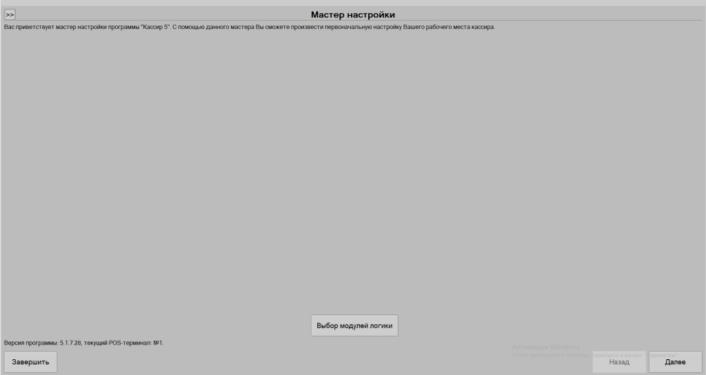 Данная форма открывается для новых БД. но и в уже существующих базах можно открыть мастер настройки для удобного подключения модулей логики