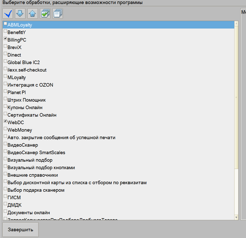 Отметить флажками какие модули подключаются