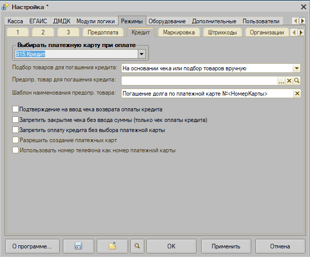 Флаг "Запретить оплату кредита без выбора платежной карты"