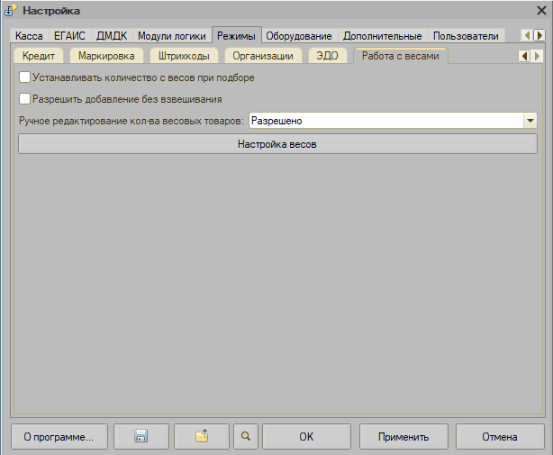 Кнопка "Настройка весов"