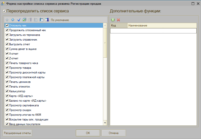 Кнопка "Настройка списка сервиса режима Регистрации"