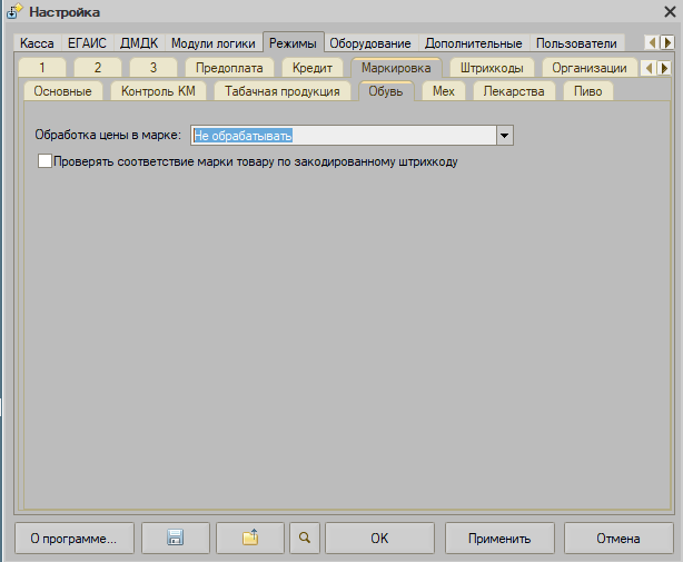 Флаг "Проверять соответствие марки товару по закодированному штрихкоду"