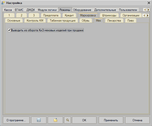 Флаг "Выводить из оборота КиЗ меховых изделий при продаже"